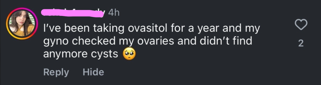 Ovasitol is a high-quality inositol supplement made with a 40:1 ratio of myo- and d-chiro-inositol, which mirrors the ratio naturally found in the body. This combo is especially helpful for improving insulin sensitivity, promoting regular ovulation, and supporting hormone balance, three key factors that can reduce the formation of painful cysts. When insulin and androgen levels start to stabilize, your cycles become more regular and your ovaries are less likely to develop those fluid-filled cysts that can trigger cramping and discomfort. Here’s more about cramps and PCOS.