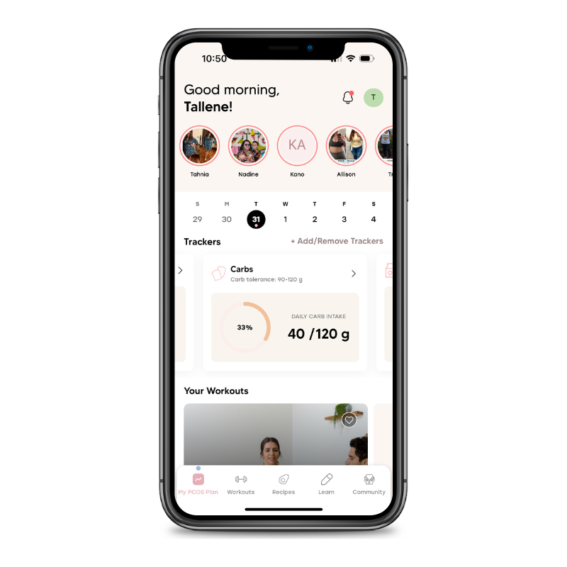 Access 100+ PCOS friendly recipes, a new workout video every month, symptom-specific meal plans, habit tracking tools, and a private PCOS community & more.